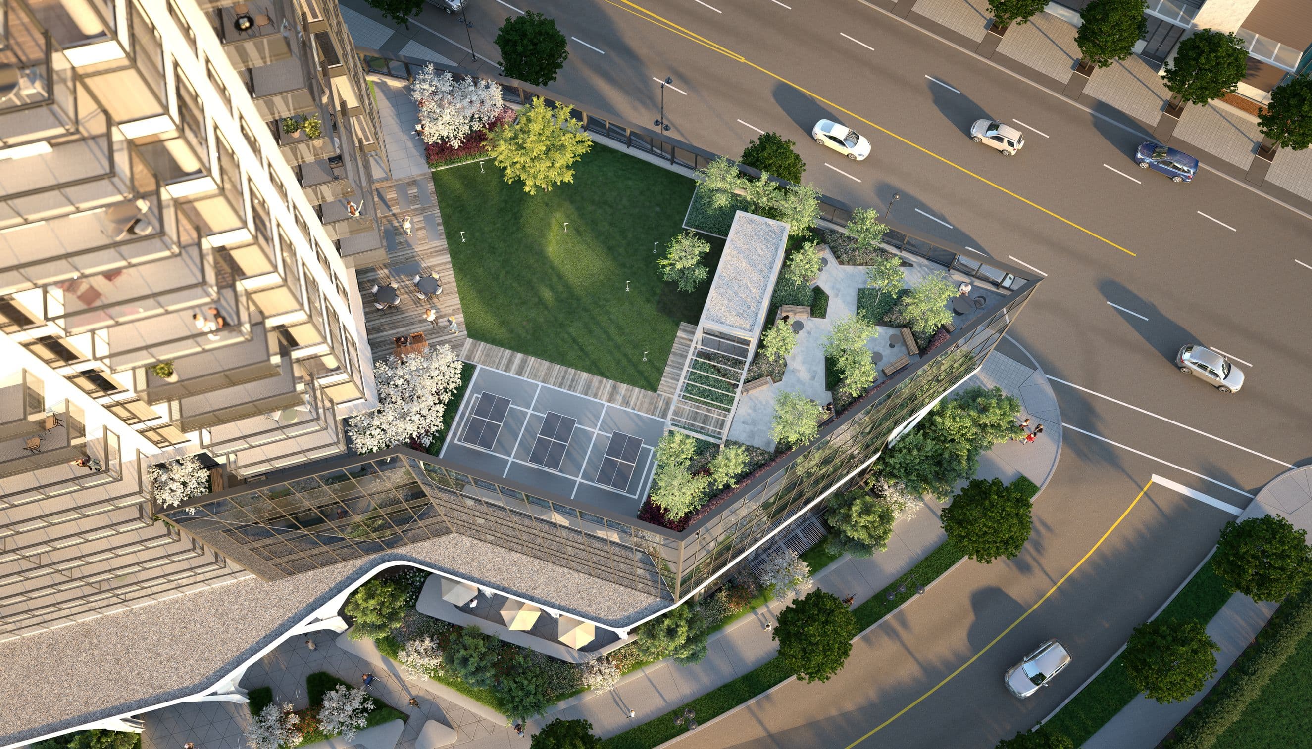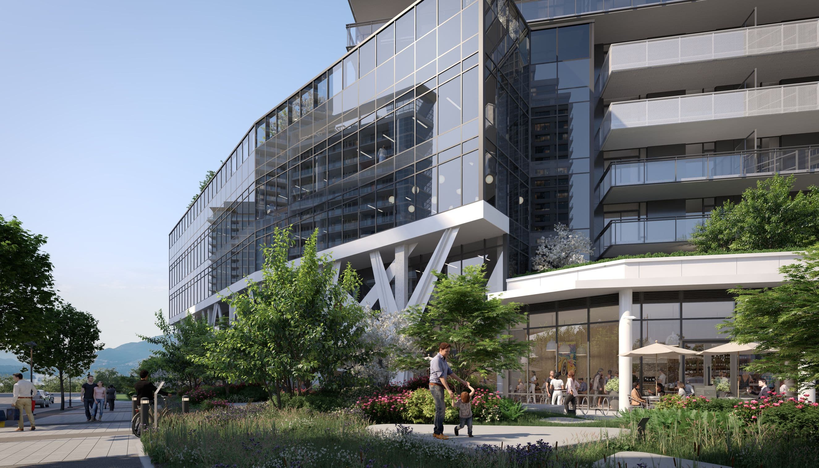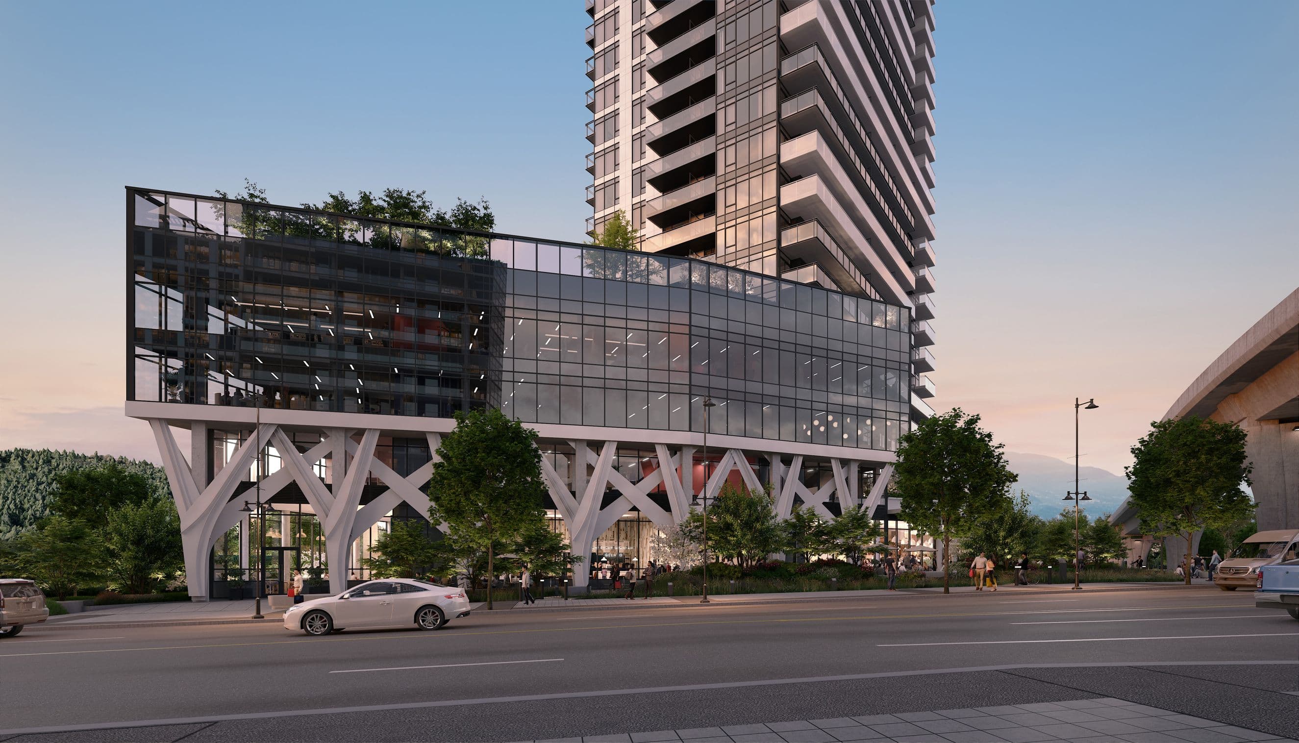 With 21,929 SF of office space over three stories, its window glazing offers ample visibility for ambitious business owners looking to make their mark. Designed to be a complete ecosystem, Elmwood is vertically integrated for life, work, rest and play. Supported by branch-like columns, the commercial podium shelters an outdoor retail experience below and supports Elmwood’s amenity rich Park Club on the terrace above. Rising up across from Burquitlam Skytrain station on the newly-built Evergreen line, Elmwood is accessible by transit, Highway 1 and Lougheed Highway—taping into an extensive commuting network that makes it easily reachable for all of Metro Vancouver.